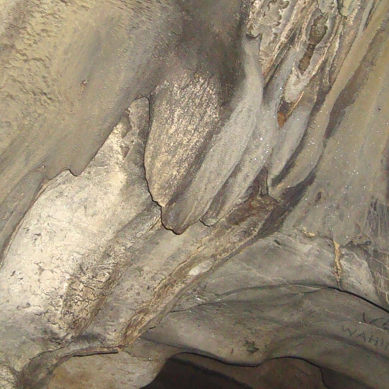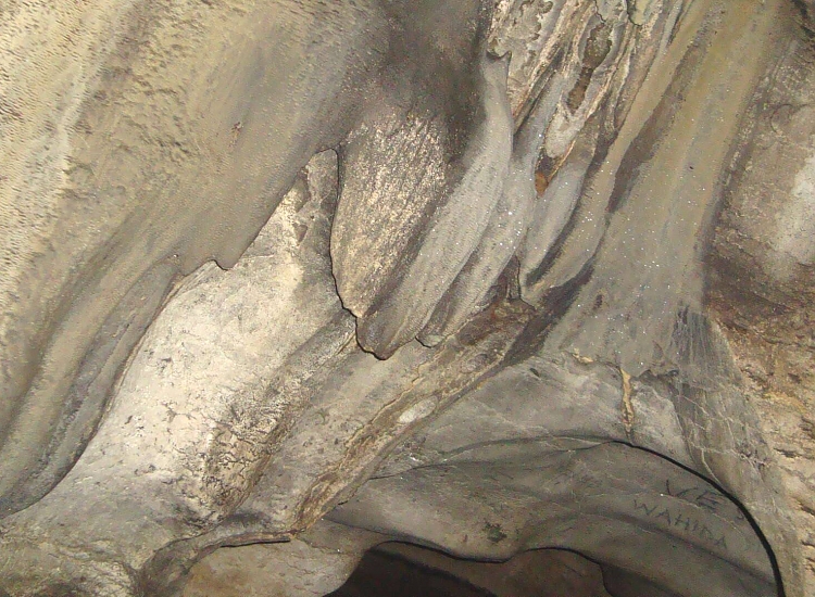 The second theory is that of phreatic origin. According to this theory, the caves are formed by erosion from the sub water table. The rain water with carbonic acid rapidly seeps through the limestone and reaches the water table before being a saturated solution of calcium bicarbonate. At this stage it is still capable of acting as a dissolving agent for the calcium carbonate.