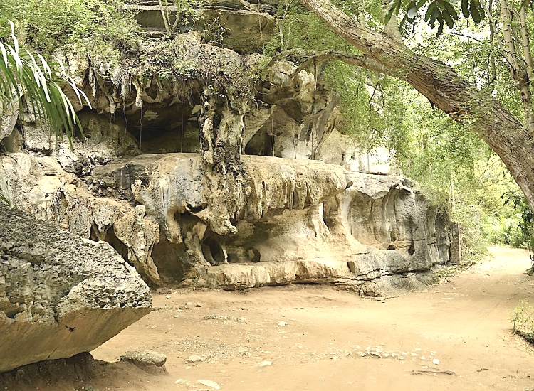 The Amboni Caves are the most extensive limestone caves in East Africa. They are located 8 km in Kiomoni Village north of Tanga City in Tanzania off the Tanga-Mombasa road. The caves were formed about 150 million years ago during the Jurassic age. It covers an area of 234 km². According to researchers the area was under water some 20 million years ago. History has it that the caves were originally thought to extend 200 km or more. There are altogether ten caves but only one is used for guided tours. The Amboni caves, which are home to a large number of bats, were traditionally thought to be home to various spirits and are still used for worship and rituals by the locals.