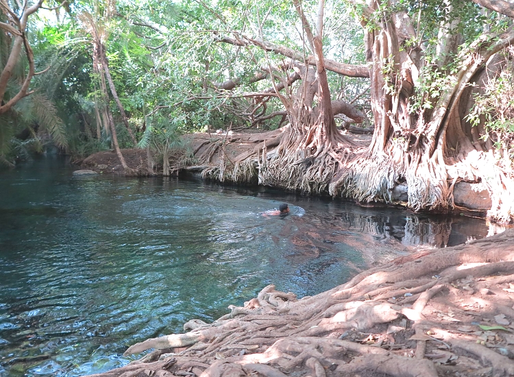 The spring is actually rather big and over 6 meters deep in some places although you can see the bottom through the crystal clear waters no matter where you are. You can also wrap your arms around one of the roots and just let the water flow by as you drift off into a daydream listening to the monkeys and birds in the treas.