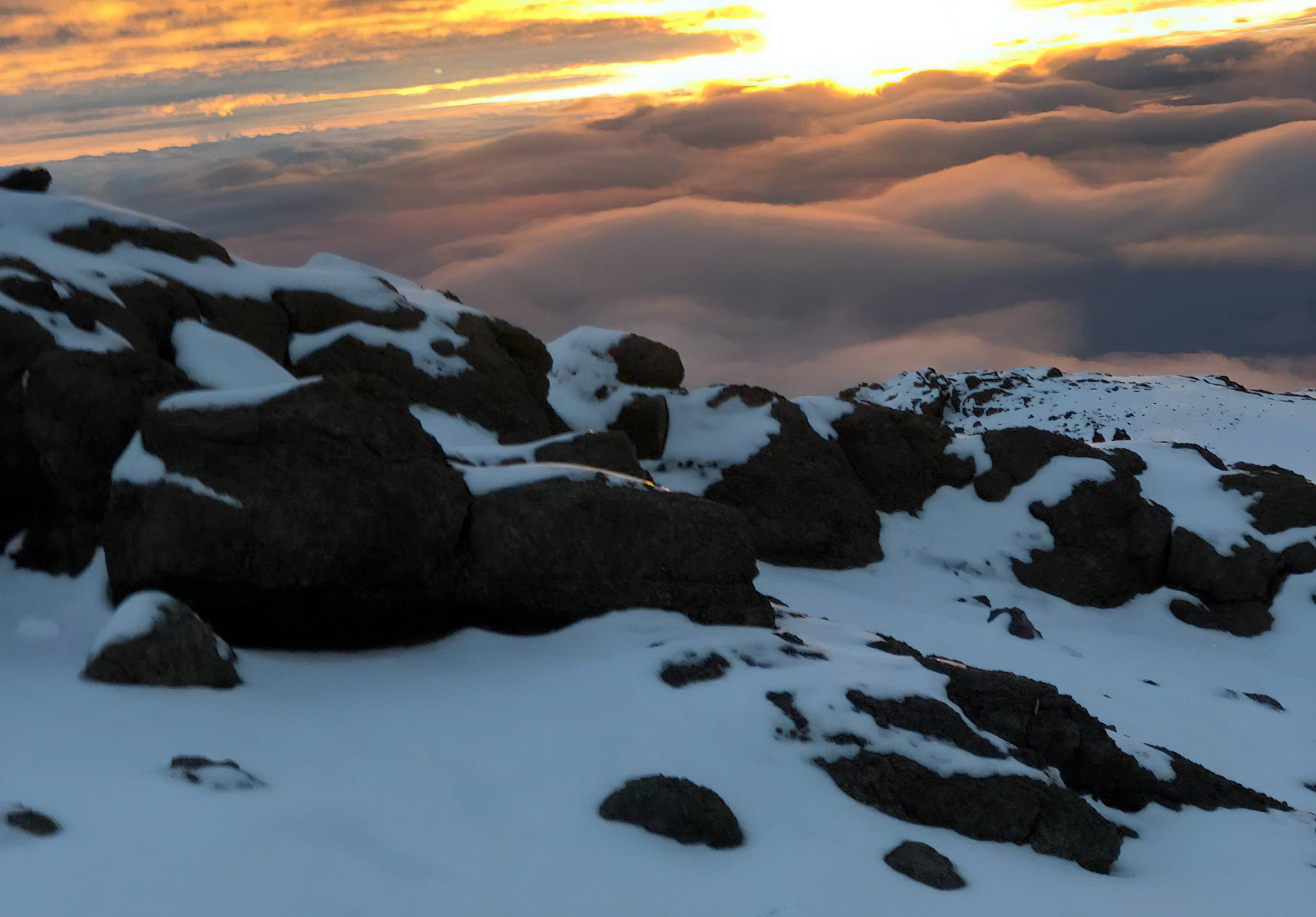 walk to Barafu camp at 4640 m. The climb will take us across desolate scree slopes with no vegetation around us at all. It’s a tough steep walk made more difficult by the altitude. On arriving at camp we eat and spend the afternoon resting as we prepare for a long night and day ahead. It is important to keep hydrated and warm. We have an early dinner and then try to get some sleep as we will be getting up at between 11pm and 12pm to start the climb to the summit. Dinner and overnight at the Camp.